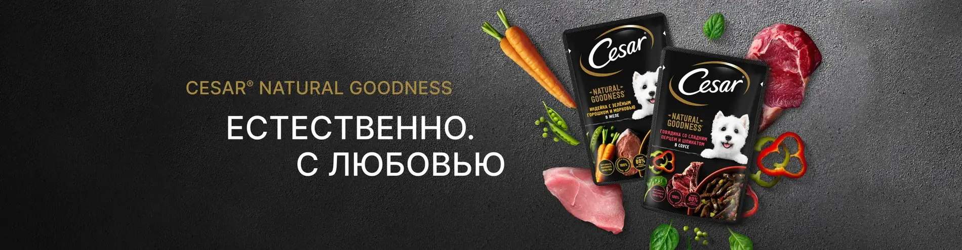 Неповторимые рецепты CESAR® — это сочетание сочного, ароматного мяса и отборных овощей. Рационы CESAR® подходят для ежедневного кормления и для того, чтобы порадовать вашего любимца утонченным рецептом.